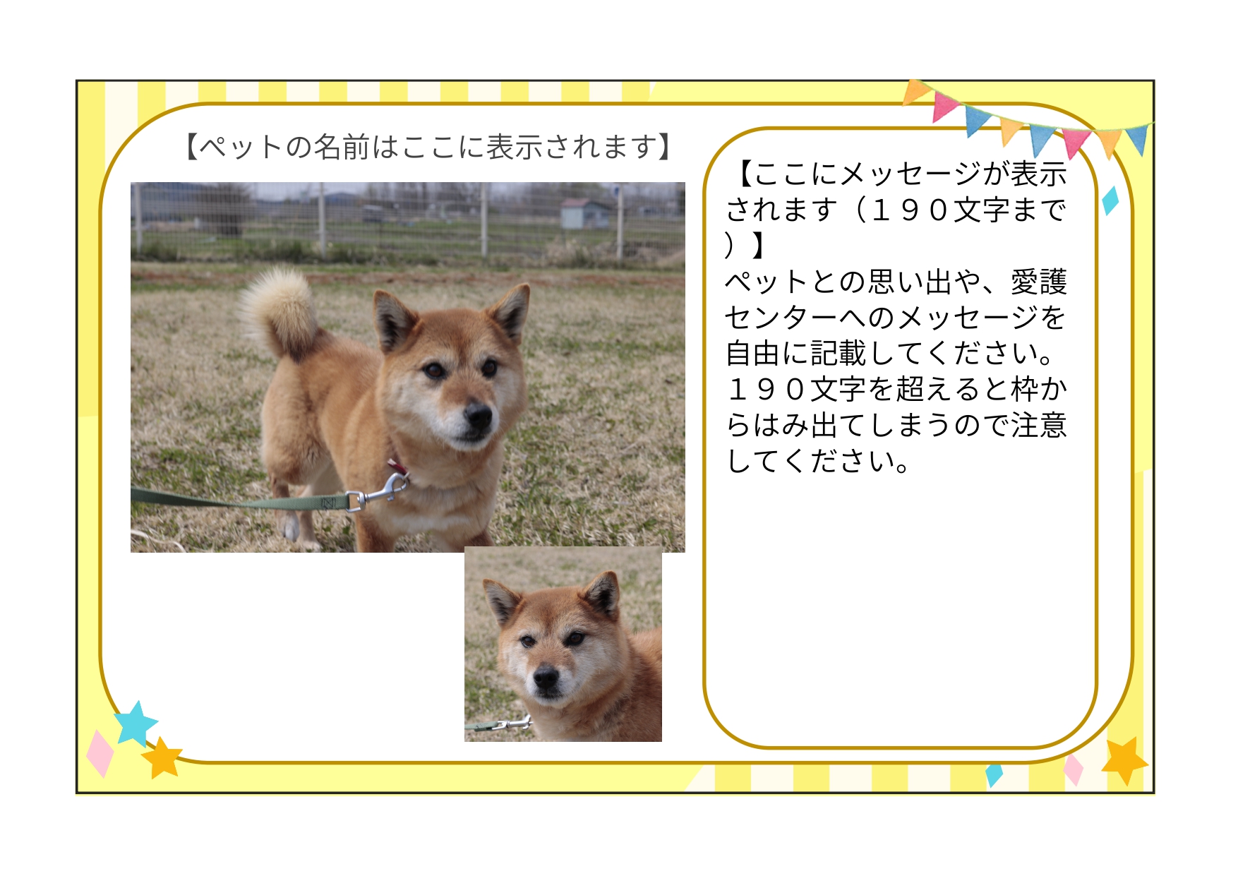 - ペットとの思い出や愛護センターへのメッセージ(190文字以内)