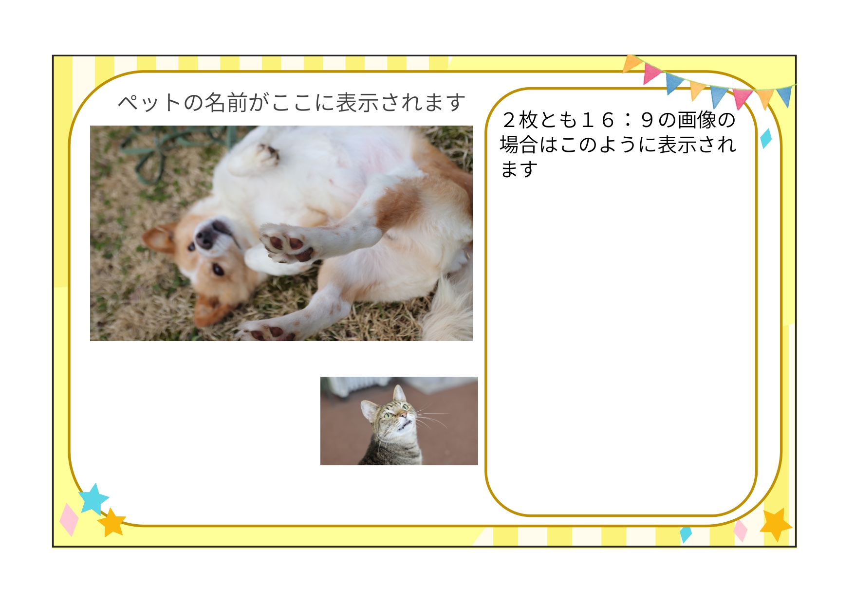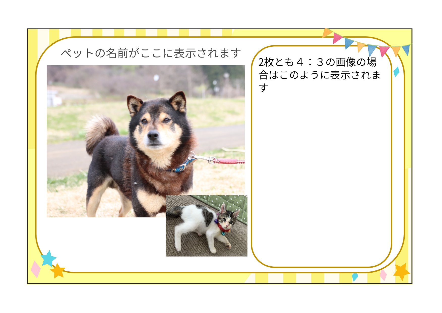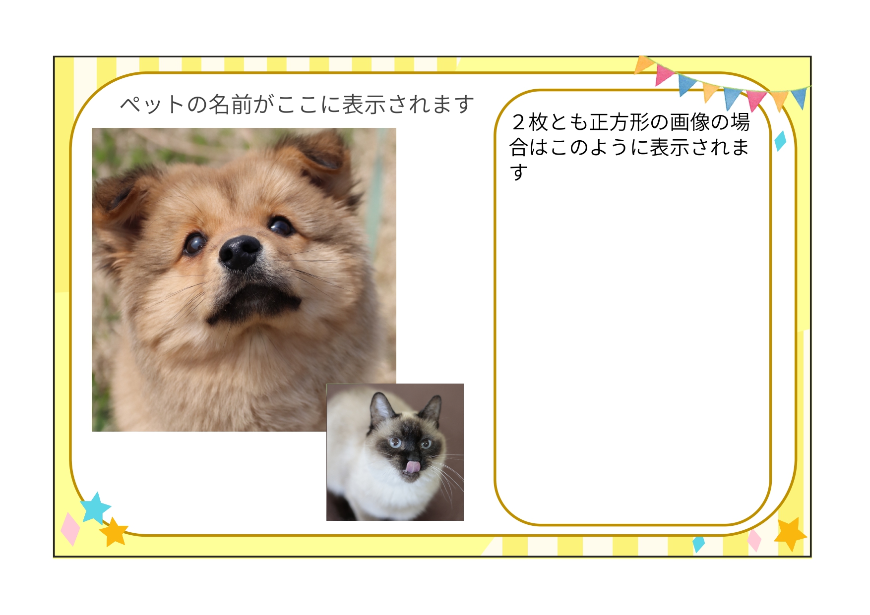 - ペットの写真(横長または正方形)
